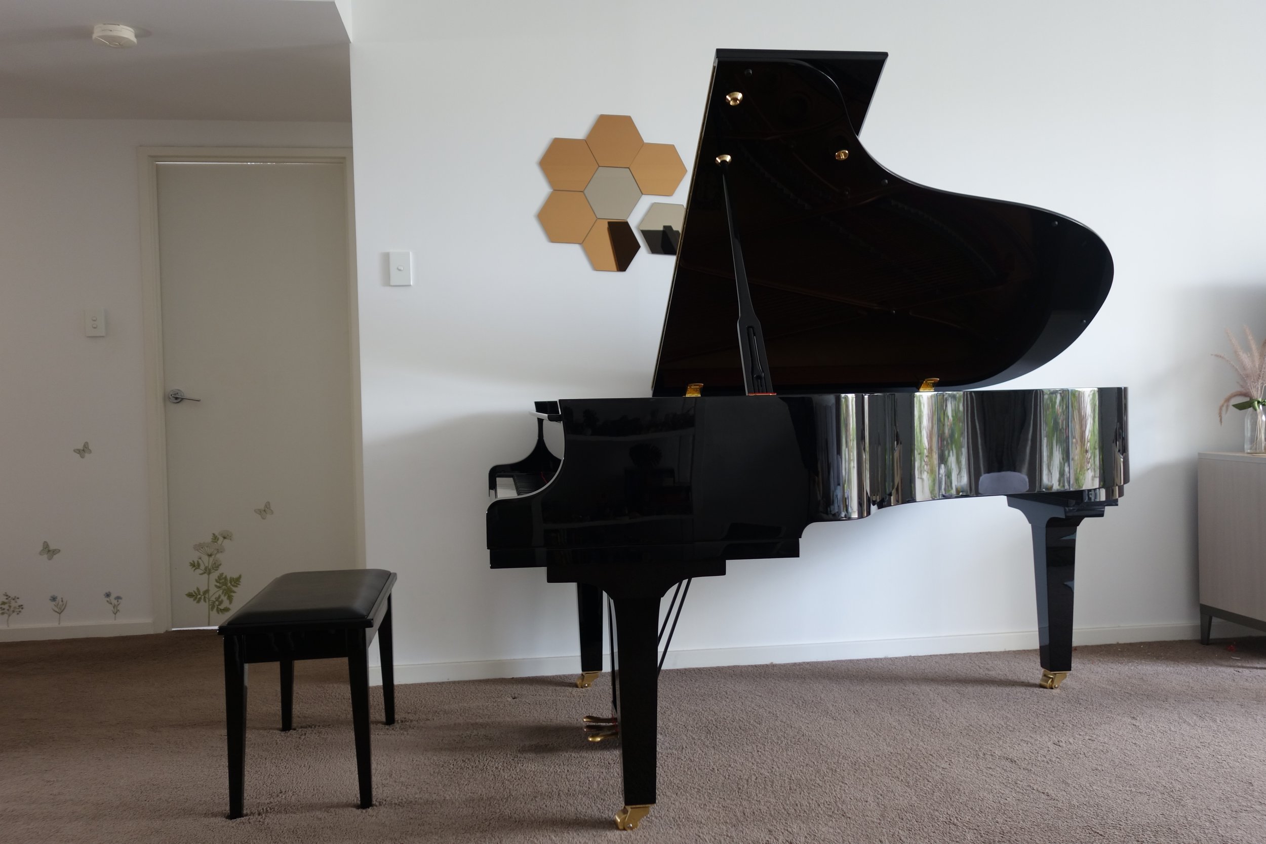 The studio features a C5X Grand Piano (Crafted in Japan)